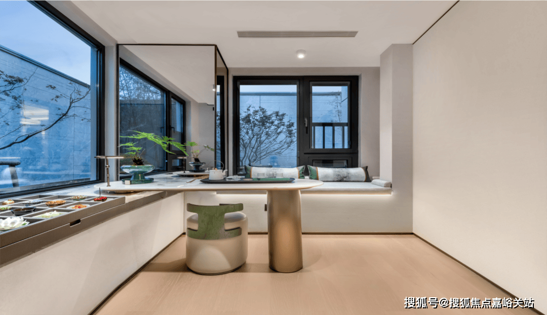 行至烟波桥,沁心水镜,踏上烟波桥,项目细心打制的高山流水景墙便可呈现于面前。整个空间植入中国制园最根基的叠山理水设想手法,随形就势,削低见高,引水成池,建土为山,使得水韵林烟景色山美如画,水秀如诗,小中见大,再现天然山川的靓丽风度。沿烟波桥行至月亭,再回看展现核心,之间高山流水、水韵林烟悦然呈现。至此可一览展现核心的建建风貌,有如“碧水连天石拱影,万山环抱翠岭长”之意境。步入这里,耸立正在面前的是一座茶亭。项目以中式宫灯制型为灵感,将它做为中国保守文化的符号使用正在景不雅中,取动物、置石组合使用现代手法的演绎出奇特的气质。能够看到项目细心选用沉达几吨的花岗岩原石手工切凿而成的茶台,将来能够约上三五老友临水而坐,把酒共饮,好不妙哉。