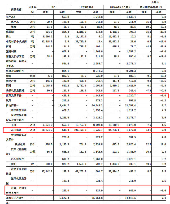 以人平易近币计,1-3月,进出口总值103013。2亿元,同比增加1。3%。1-3月,出口总值61313。7亿元,同比增加6。9%;此中,3月同比增加13。5%。1-3月,进口总值41699。5亿元,同比下降6。0%;此中,3月同比下降3。5%。